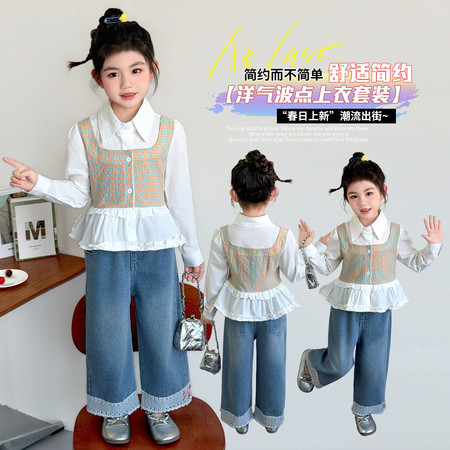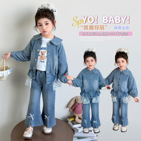 1*2收藏“8908款相拼蕾丝牛仔套装--偏小半码”